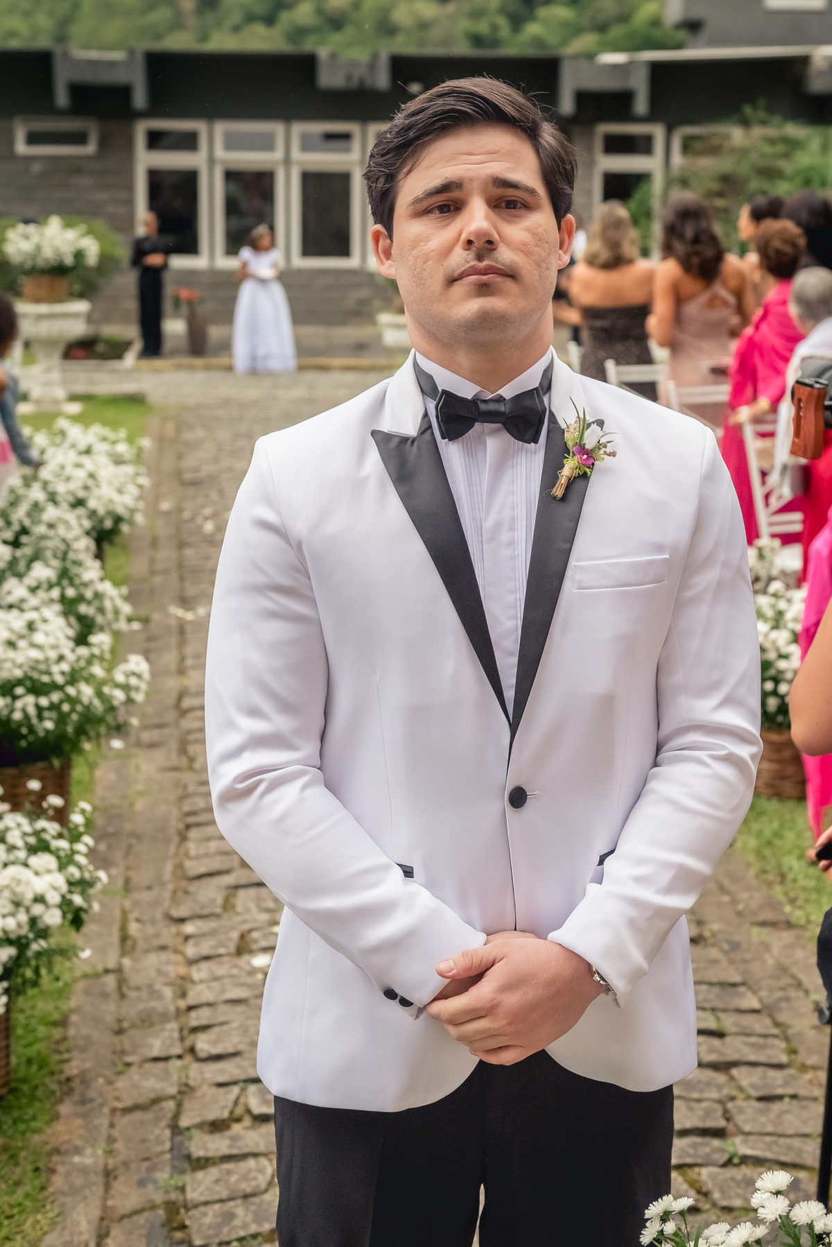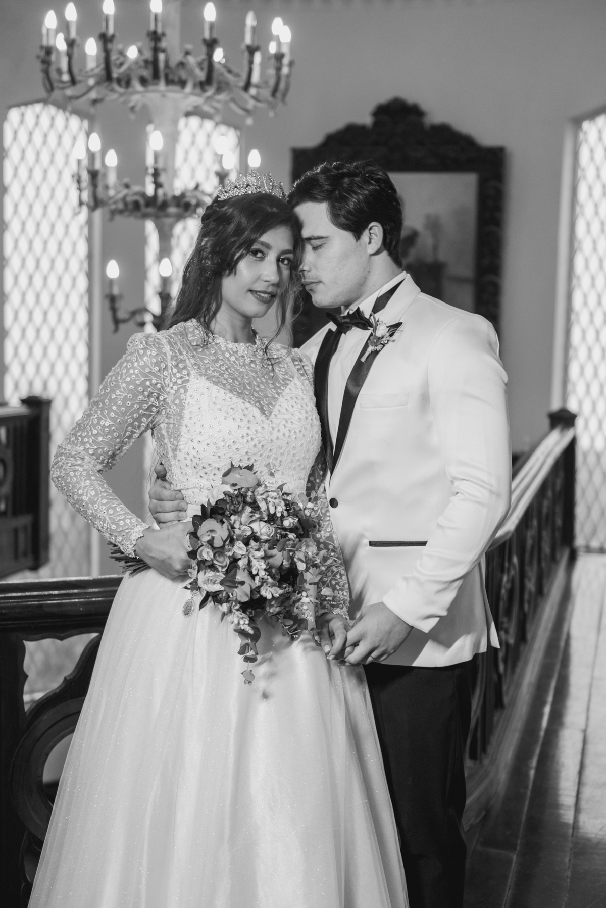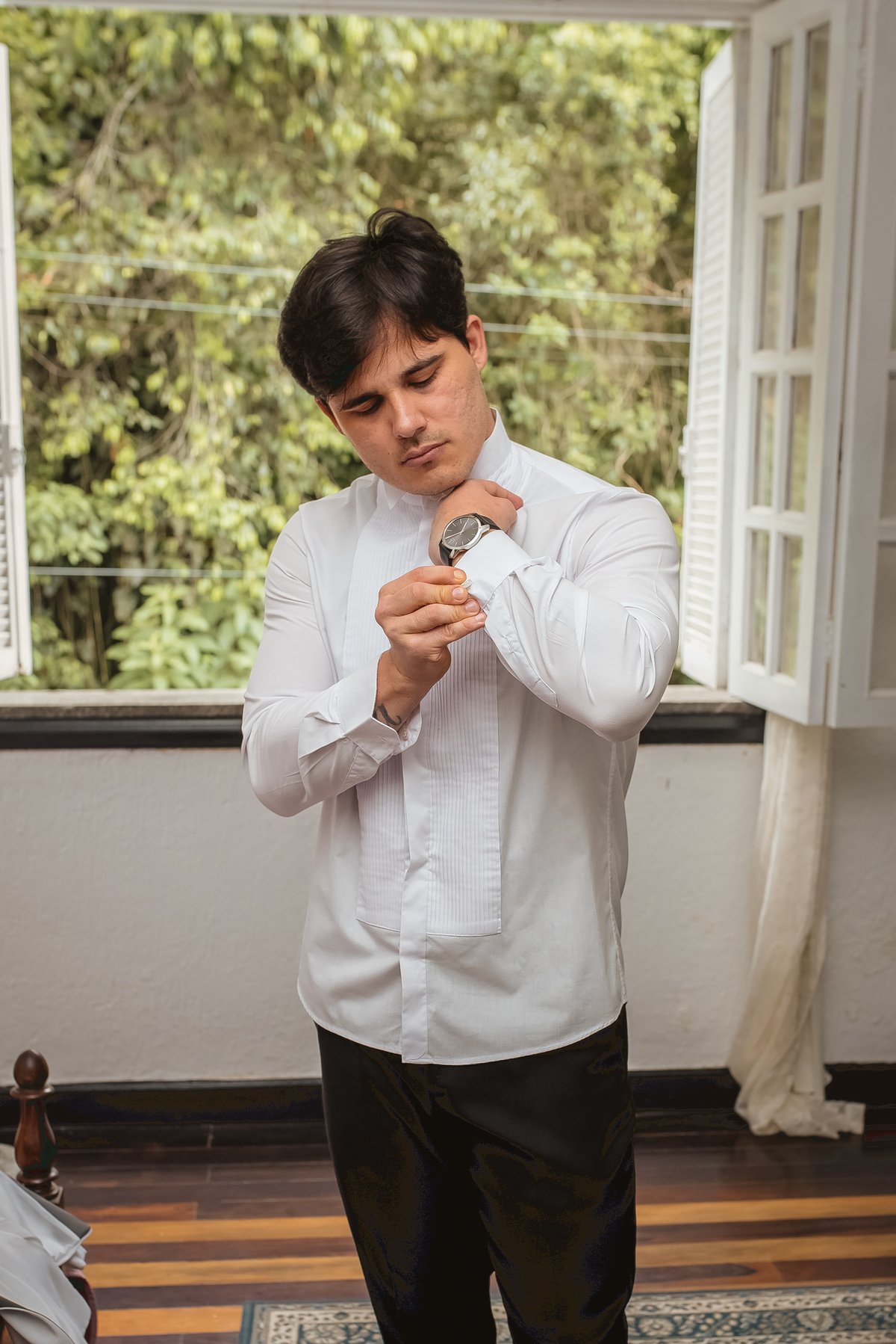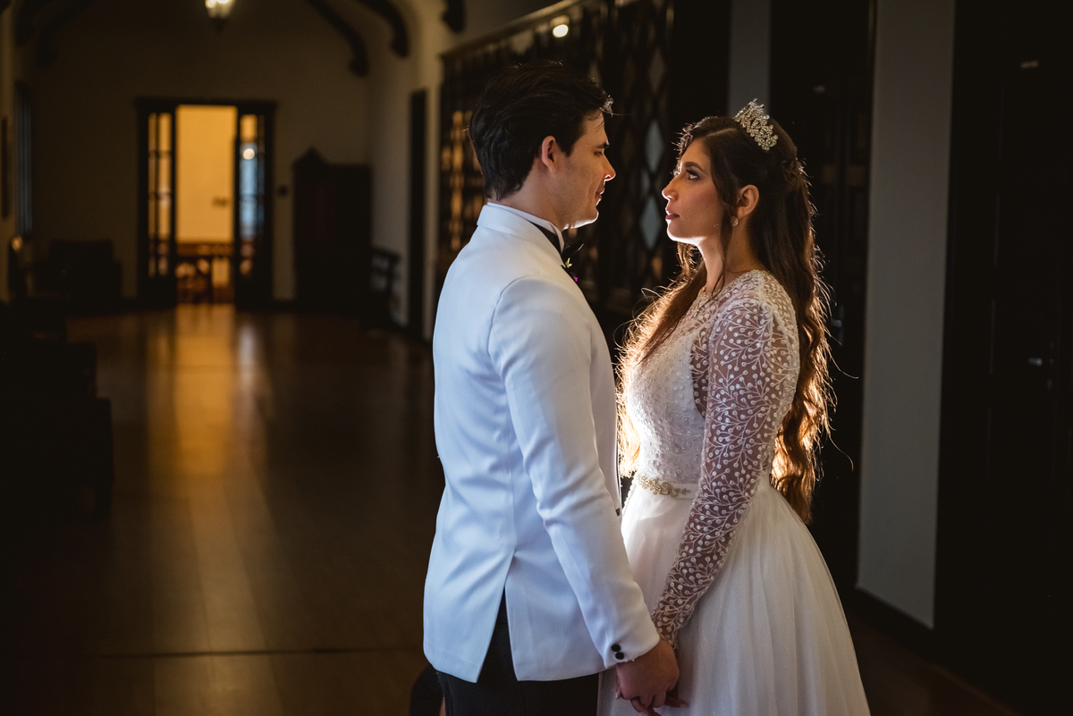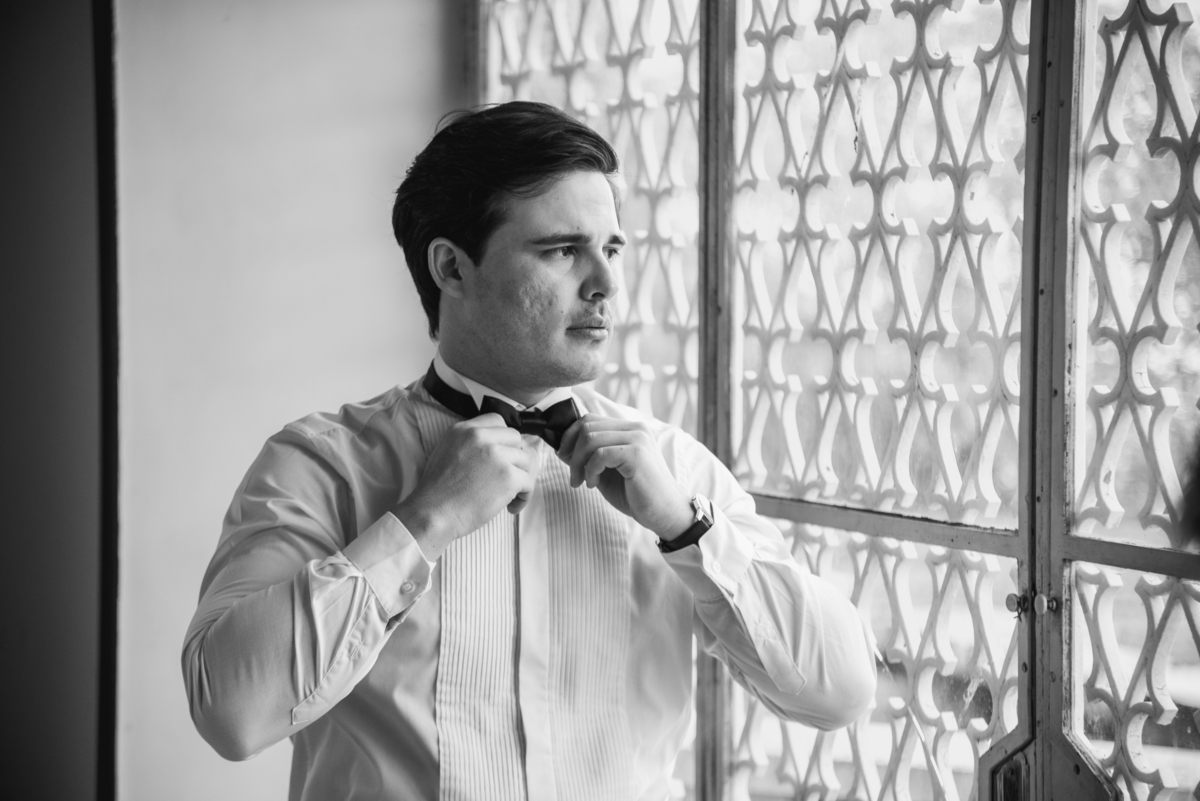 Ainda tivemos tempo de fotografar o noivo Caio pelos corredores do castelo e também na sacada enquanto a Paola colocava o seu vestido para o grande momento. Nesse momento também tivemos uma surpresa para o noivo que se emocionou com a recordação de entes queridos.