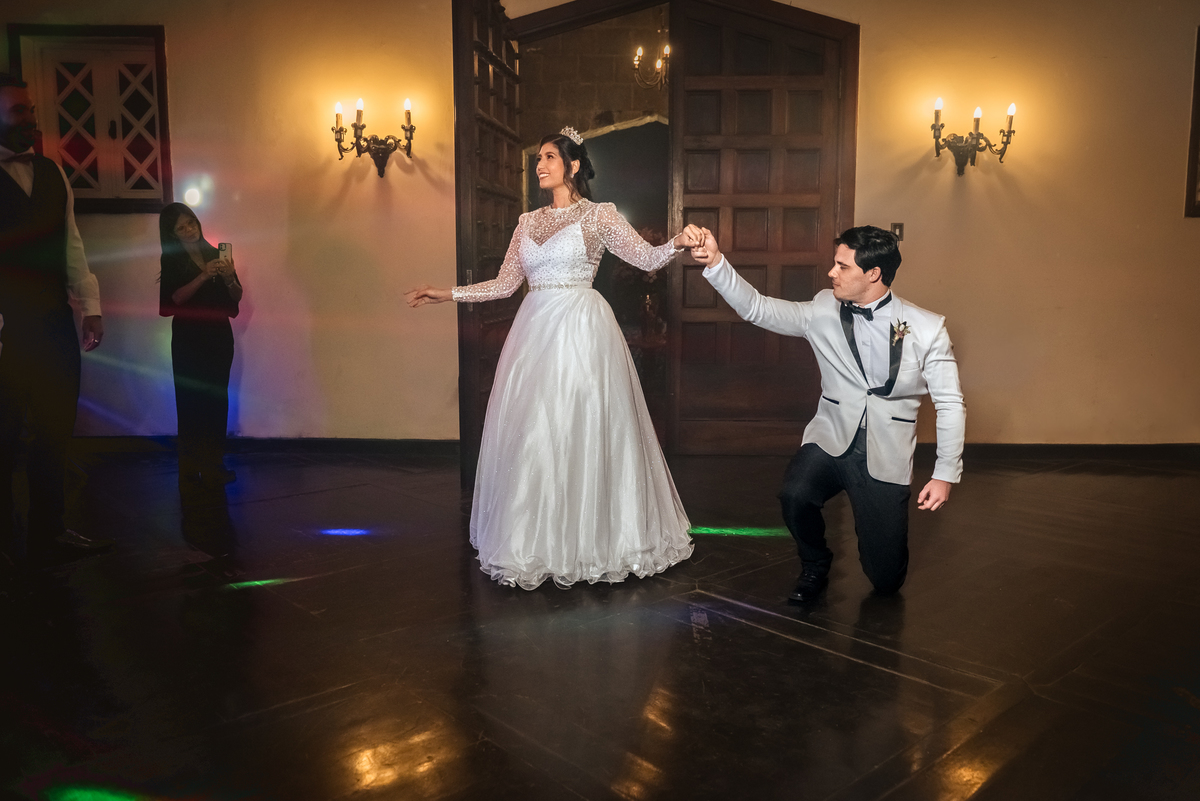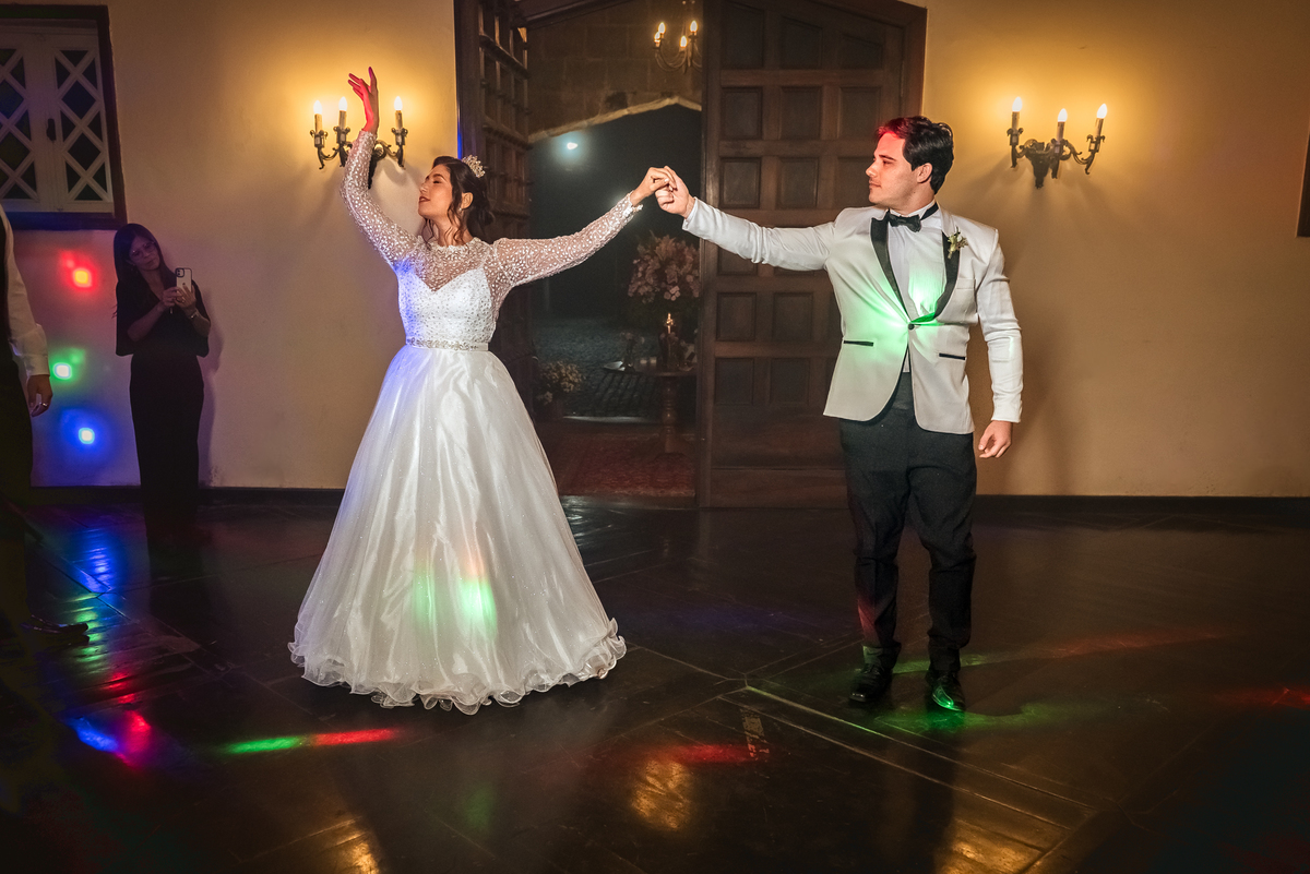 Primeiramente os dois dançaram a tradicional valsa e depois se transformou em uma dança mais agitada e muito bem coreografada, terminando com a entrada dos padrinhos que também ensaiaram muito para esse momento. No final da dança houve uma chuva de prata.