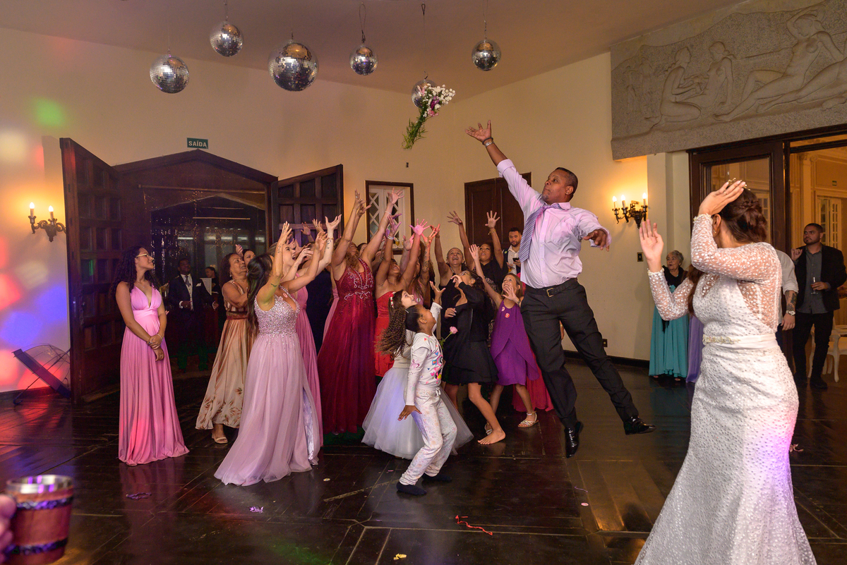 O casal cumprimentou seus convidados e dançaram a noite inteira. Só faltava o momento do buquê que foi pego pela irmã do Caio. Eu acredito na tradição e o namorado dela ficou muito feliz.
