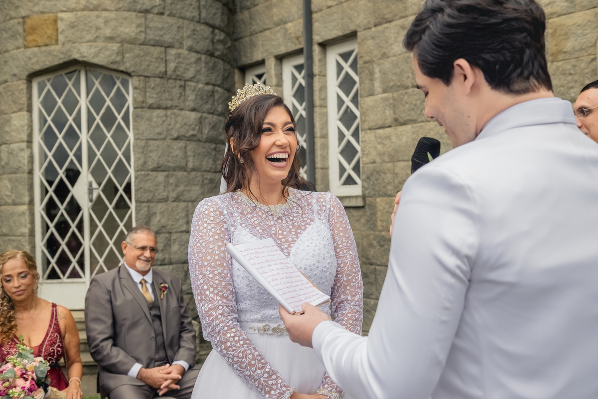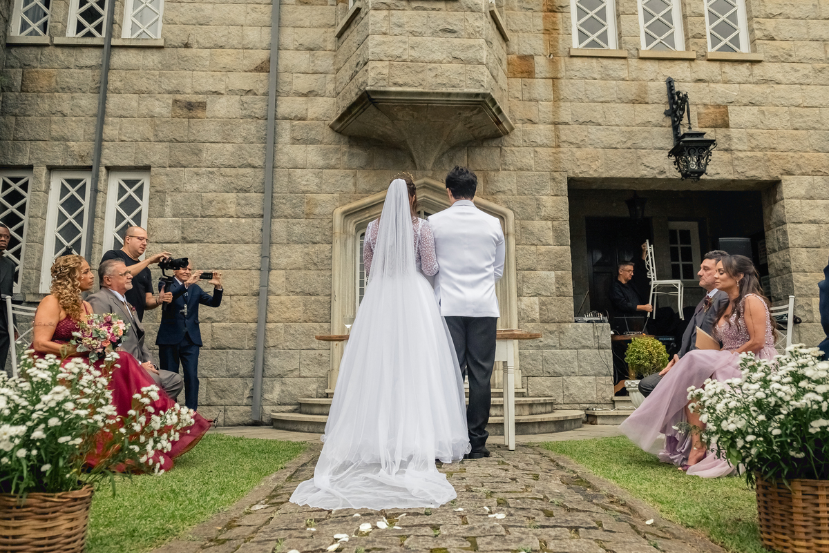 Foi quase um ano de espera por esse momento mágico. Um sonho, casar em um castelo e exatamente da forma que eles desejavam. A decoração da Andrea estava linda, a maquiagem da Jani impecável, o vestido maravilhoso fez as madrinhas se emocionarem no first view (Foto desse momento na sequência), traje do noivo e etc... Rsrs.