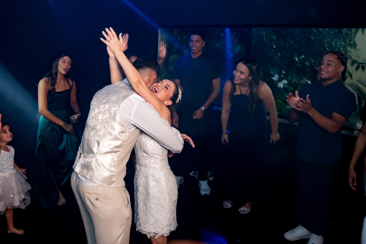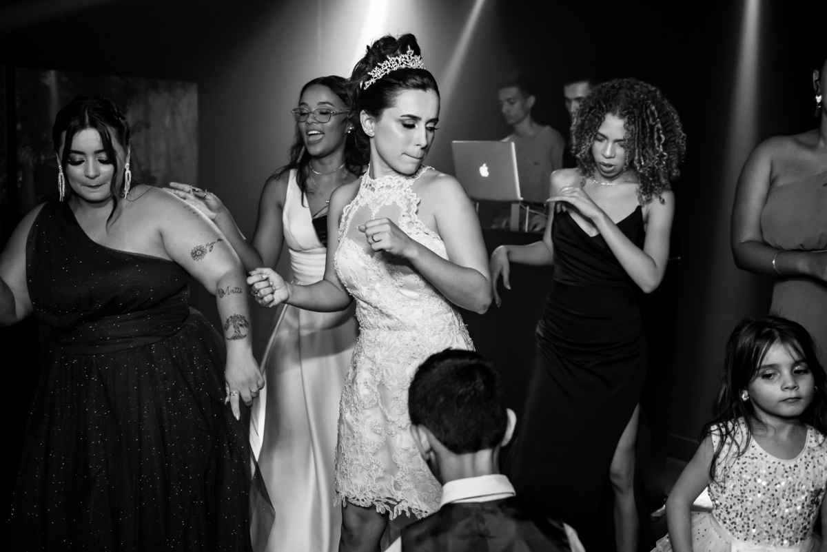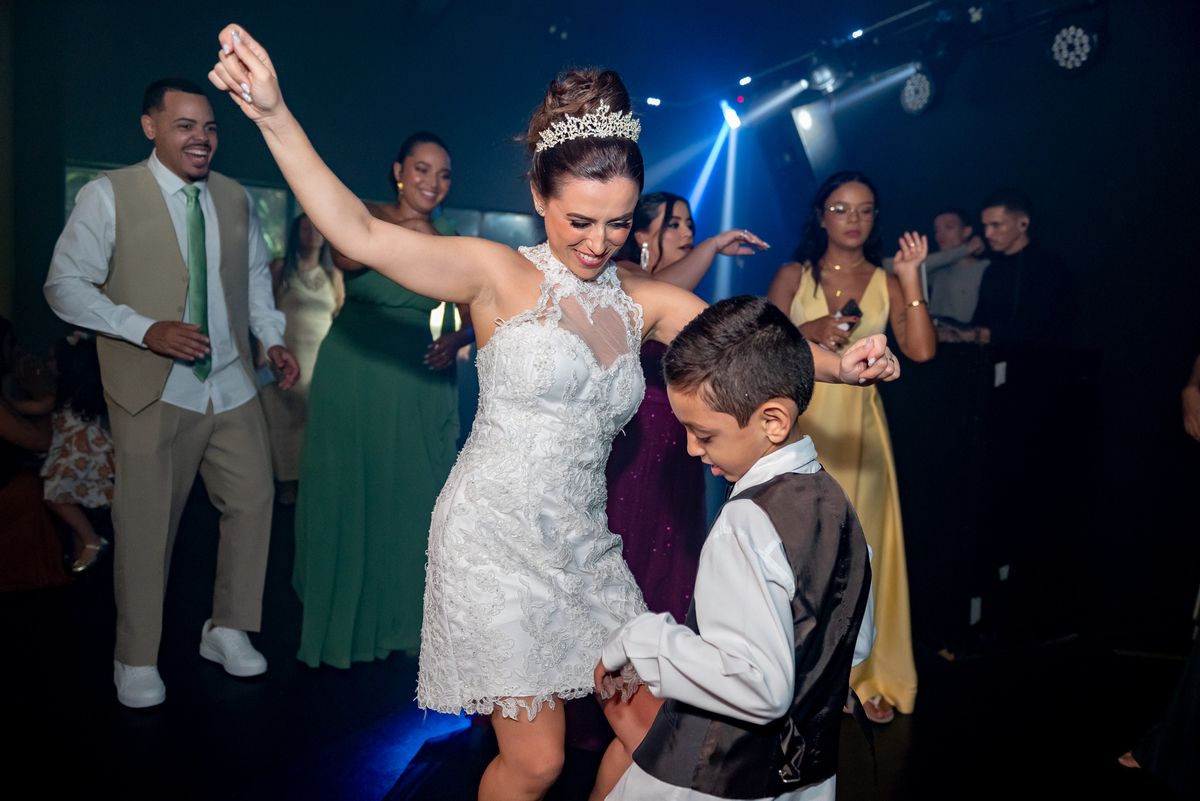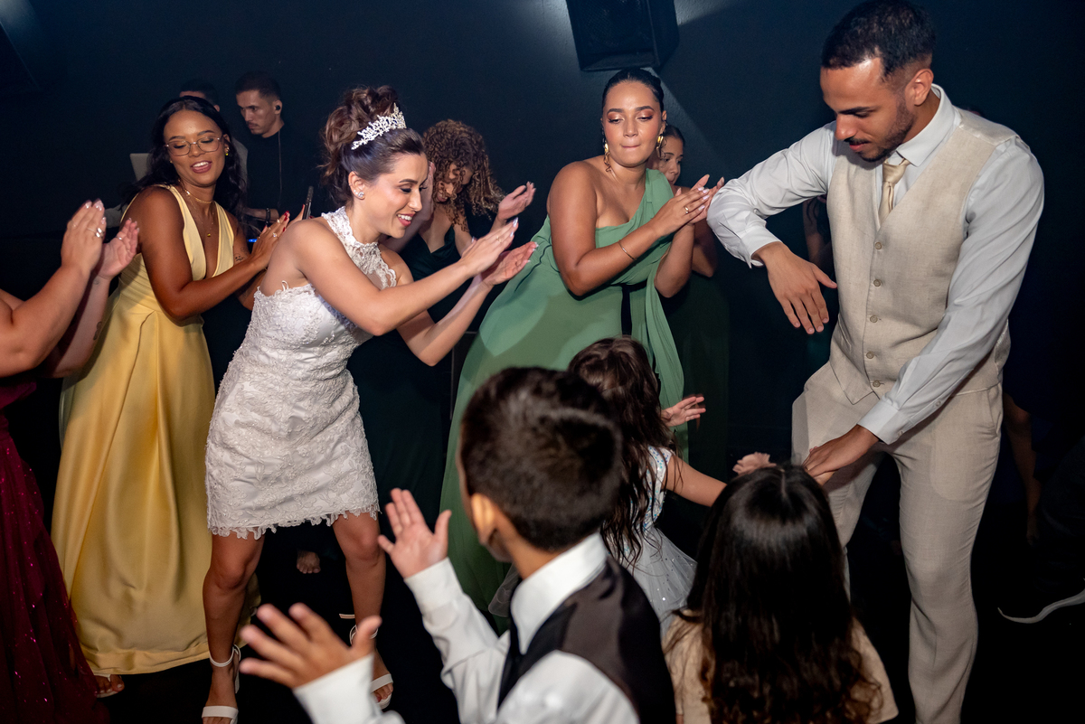 Na pista de dança, as crianças foram a atração principal. A noiva também estava muito animada para a hora do buquê. Esse momento foi uma festa a parte.