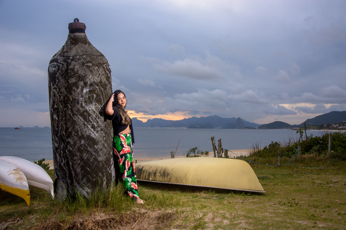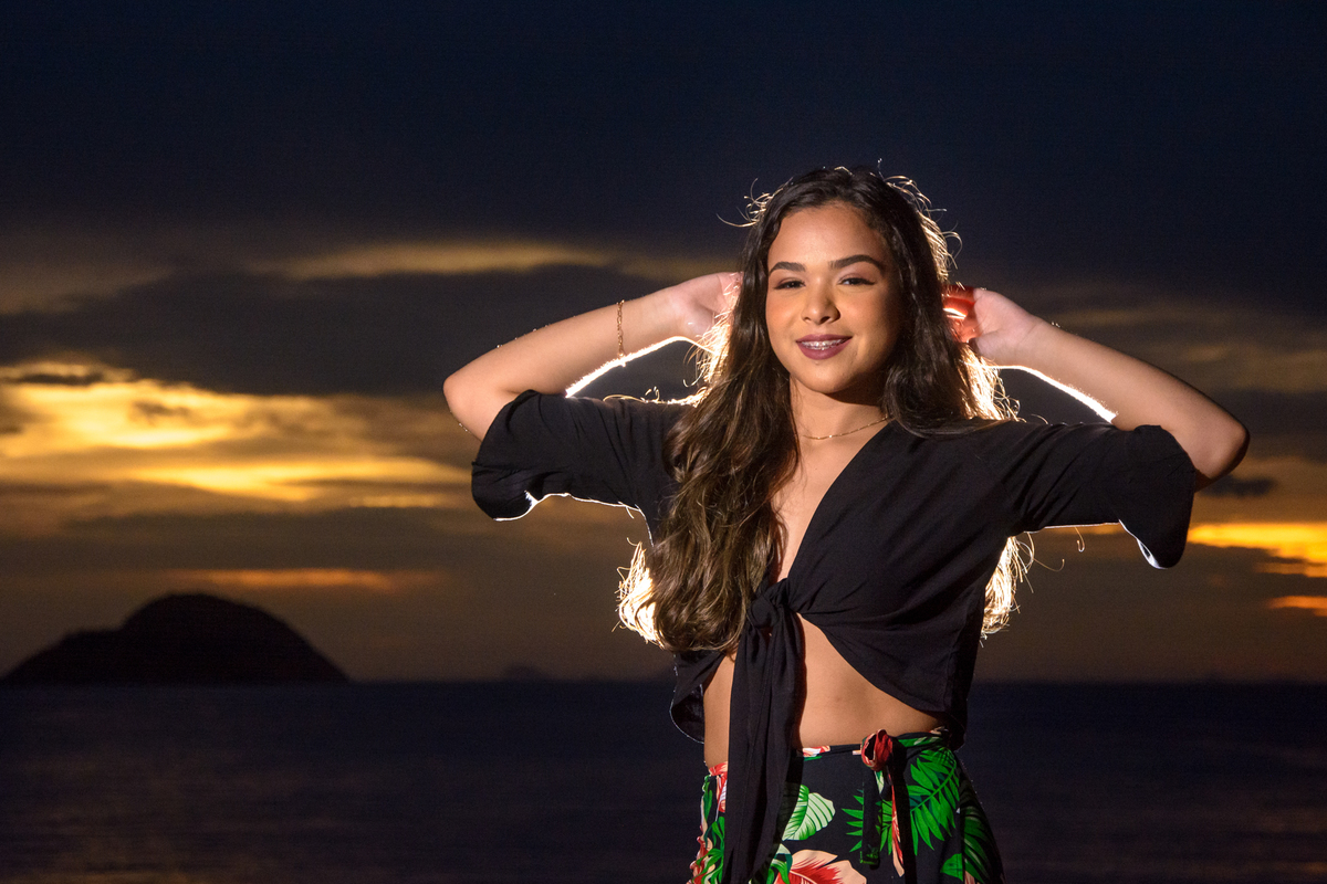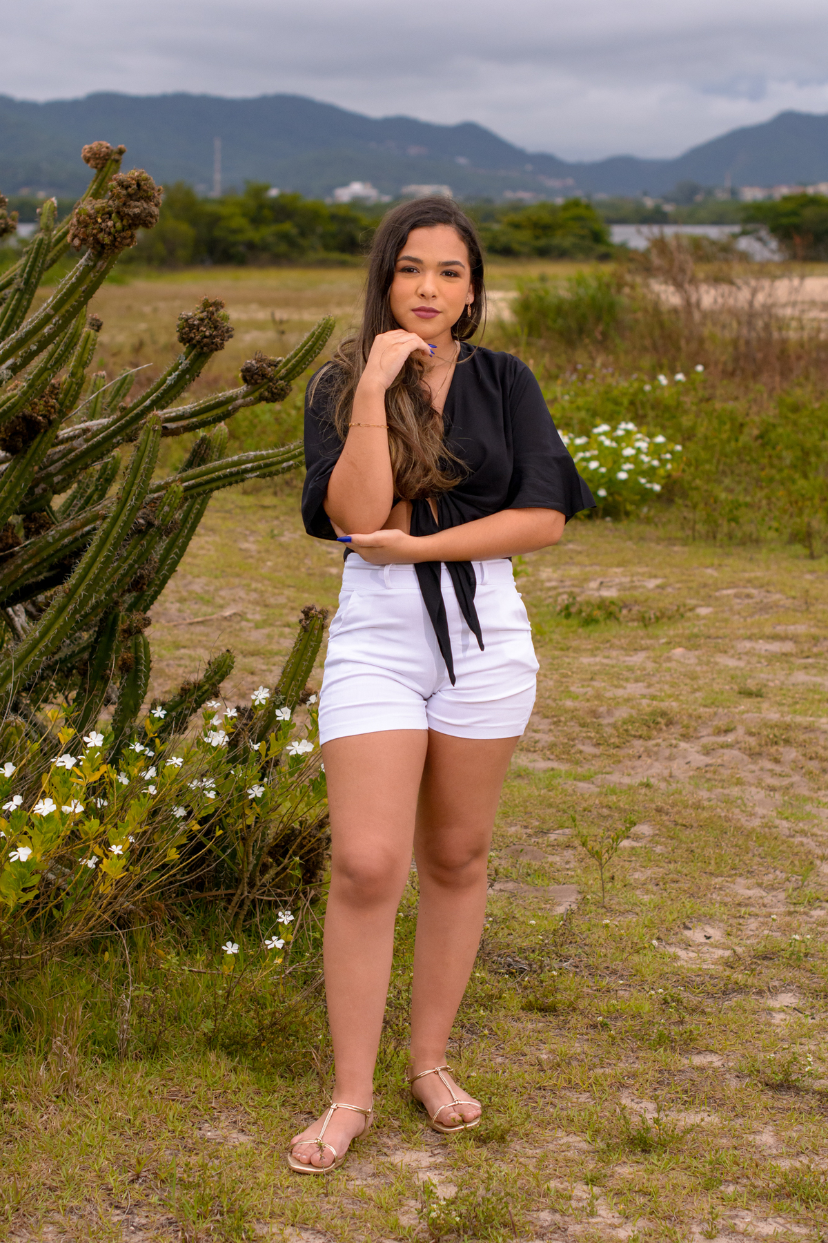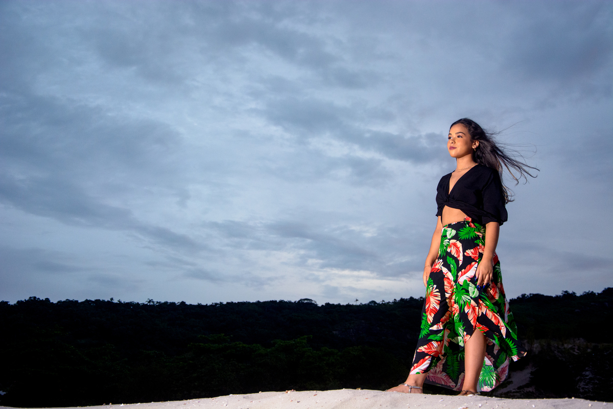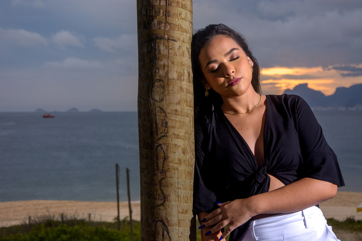 A debutante usou vestido azul e depois um top preto com short branco. Fotografamos também no canal de Itaipú e na praia de camboinhas. Buscávamos o por do sol mas infelizmente o dia não ajudou nessa parte. Pelo menos deu para fazer algumas fotos com alguns raios saindo por entre as nuvens, o que deu um clima bem interessante nessas fotografias.