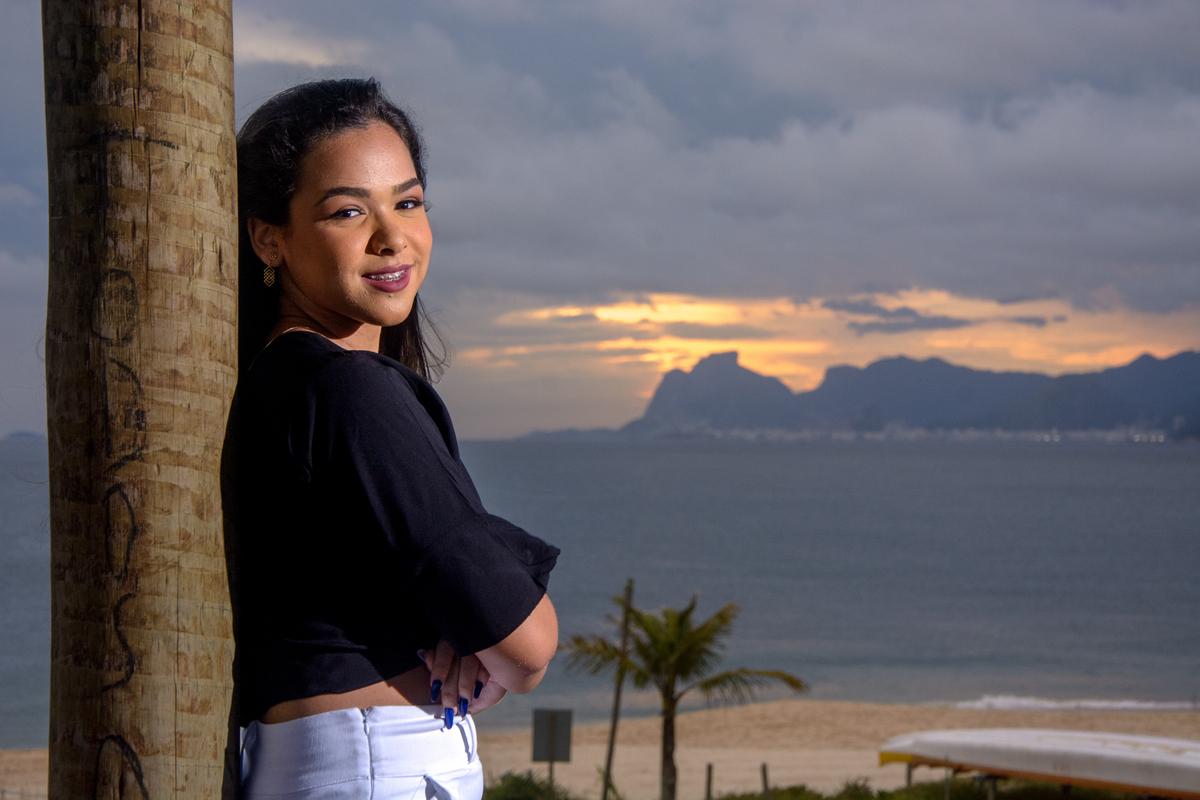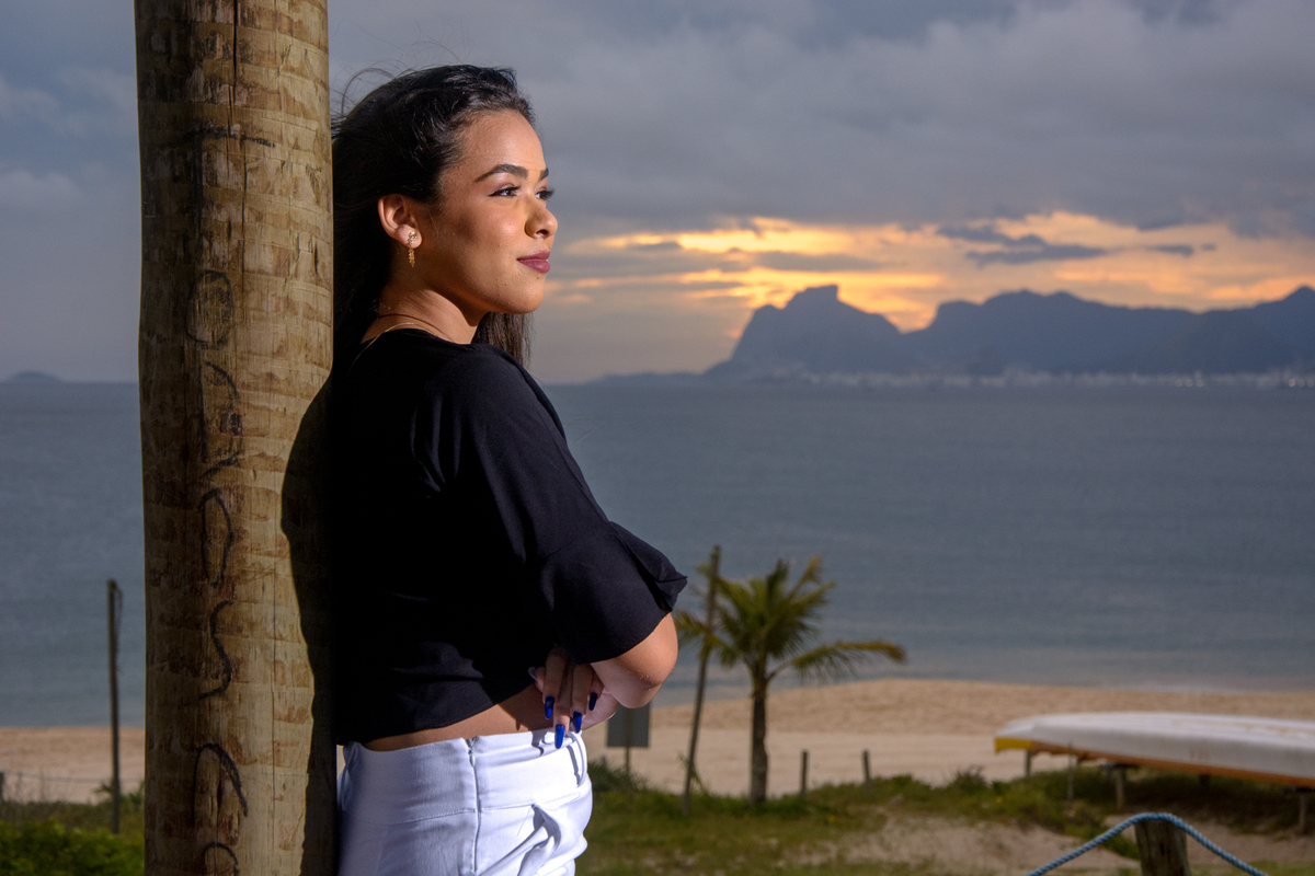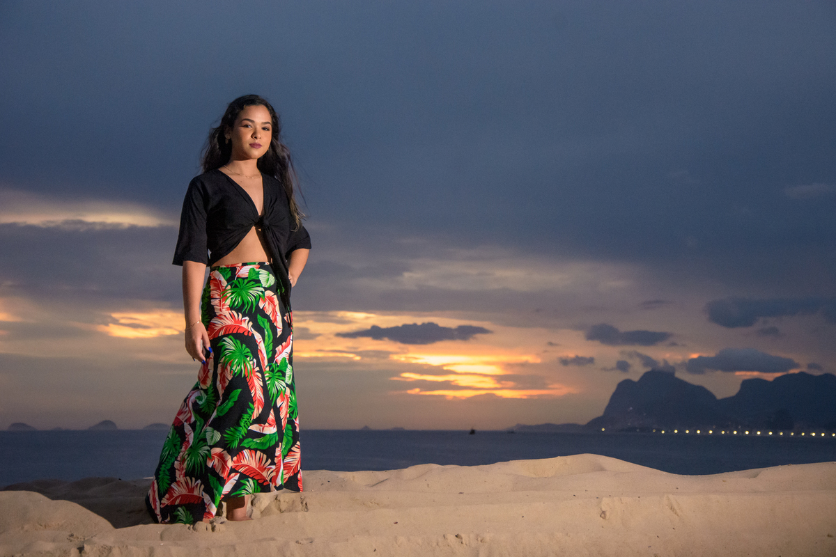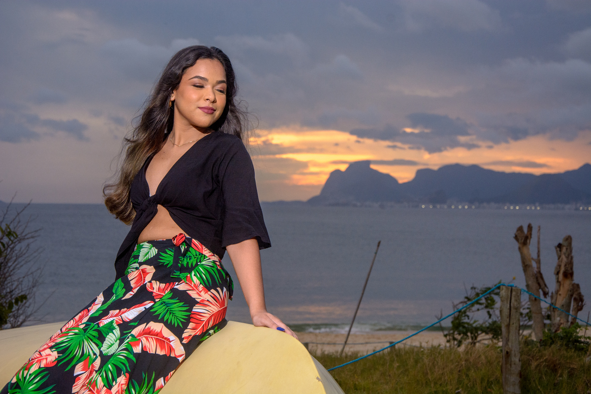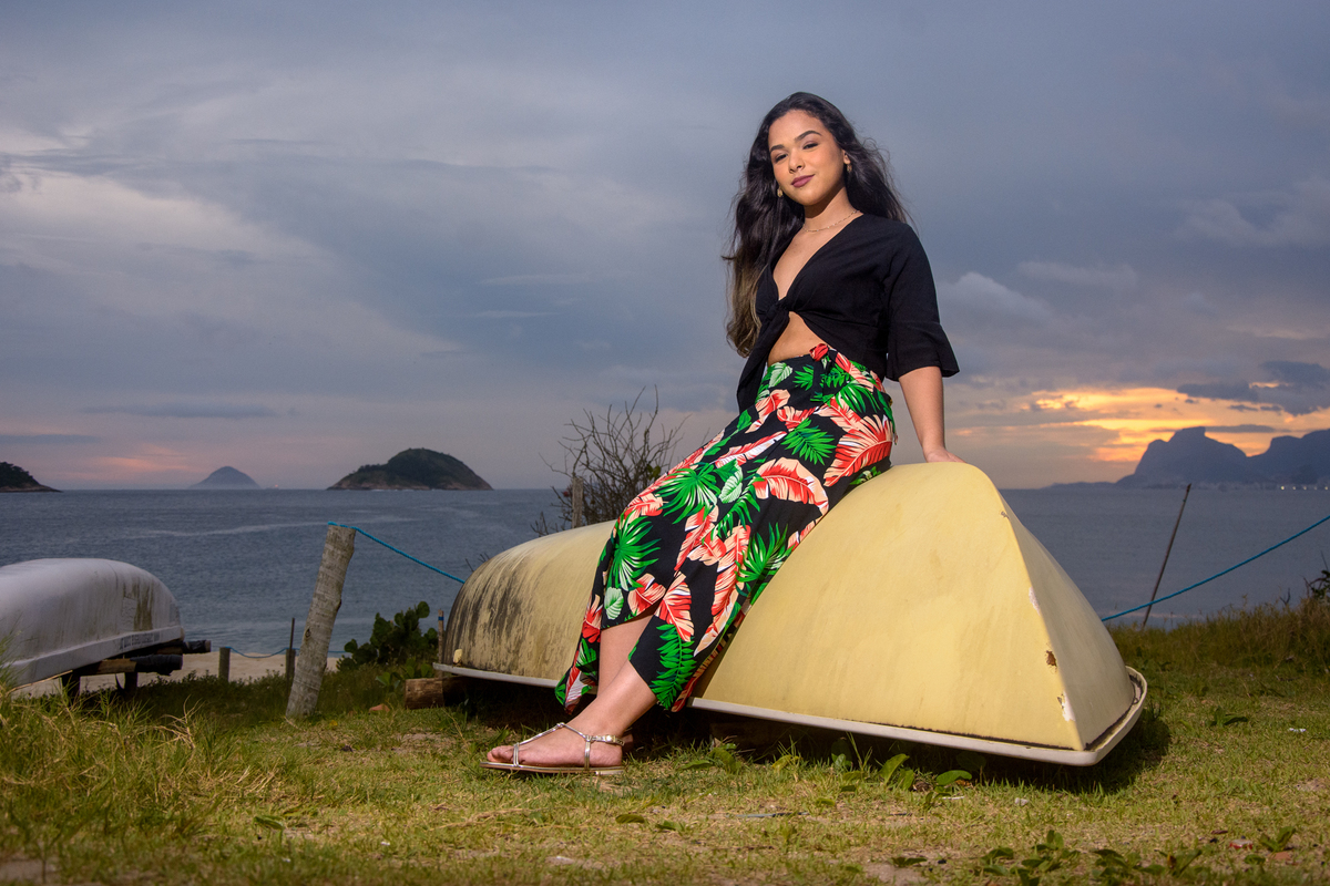 A debutante usou vestido azul e depois um top preto com short branco. Fotografamos também no canal de Itaipú e na praia de camboinhas. Buscávamos o por do sol mas infelizmente o dia não ajudou nessa parte. Pelo menos deu para fazer algumas fotos com alguns raios saindo por entre as nuvens, o que deu um clima bem interessante nessas fotografias.