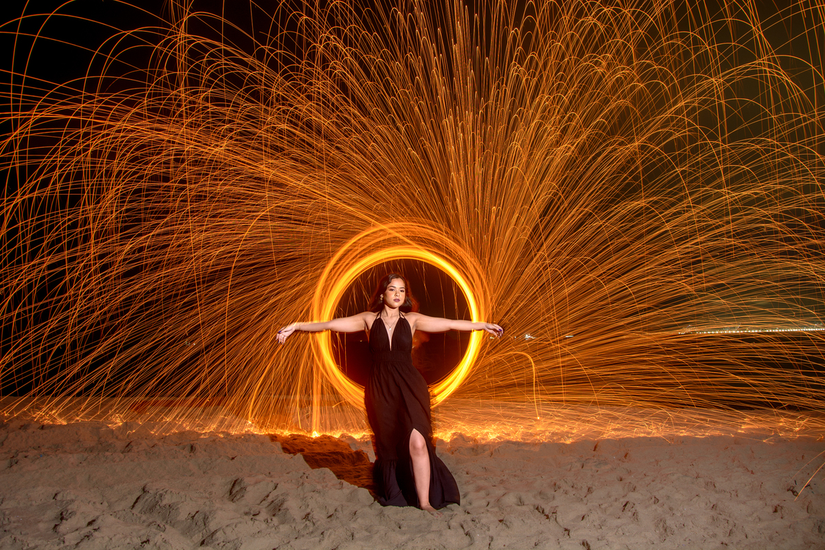Nesse ensaio utilizei técnicas avançadas de fotografia, por exemplo o lightpaint realizado com bombril para criar o efeito de fogo atrás da debutante, conforme podem conferir no final do ensaio.